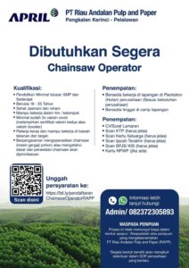 - Berpengalaman mengoperasikan chainsaw (mesin gergaji pohon) atau mengetahui dasar dan perawatan chainsaw akan diprioritaskan