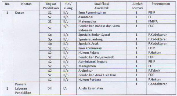 • Untuk pranata laboran pendidikan dengan IPK minimal 2.75 dan dari perguruan tinggi yang terakreditasi.