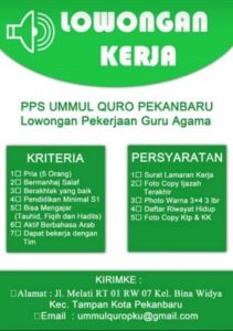 PPS Ummul Quro Pekanbaru membutuhkan tenaga kerja untuk guru Agama