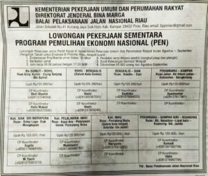 Lowongan Pekerjaan Sementara Program Pemulihan Ekonomi Sosial (PEN)